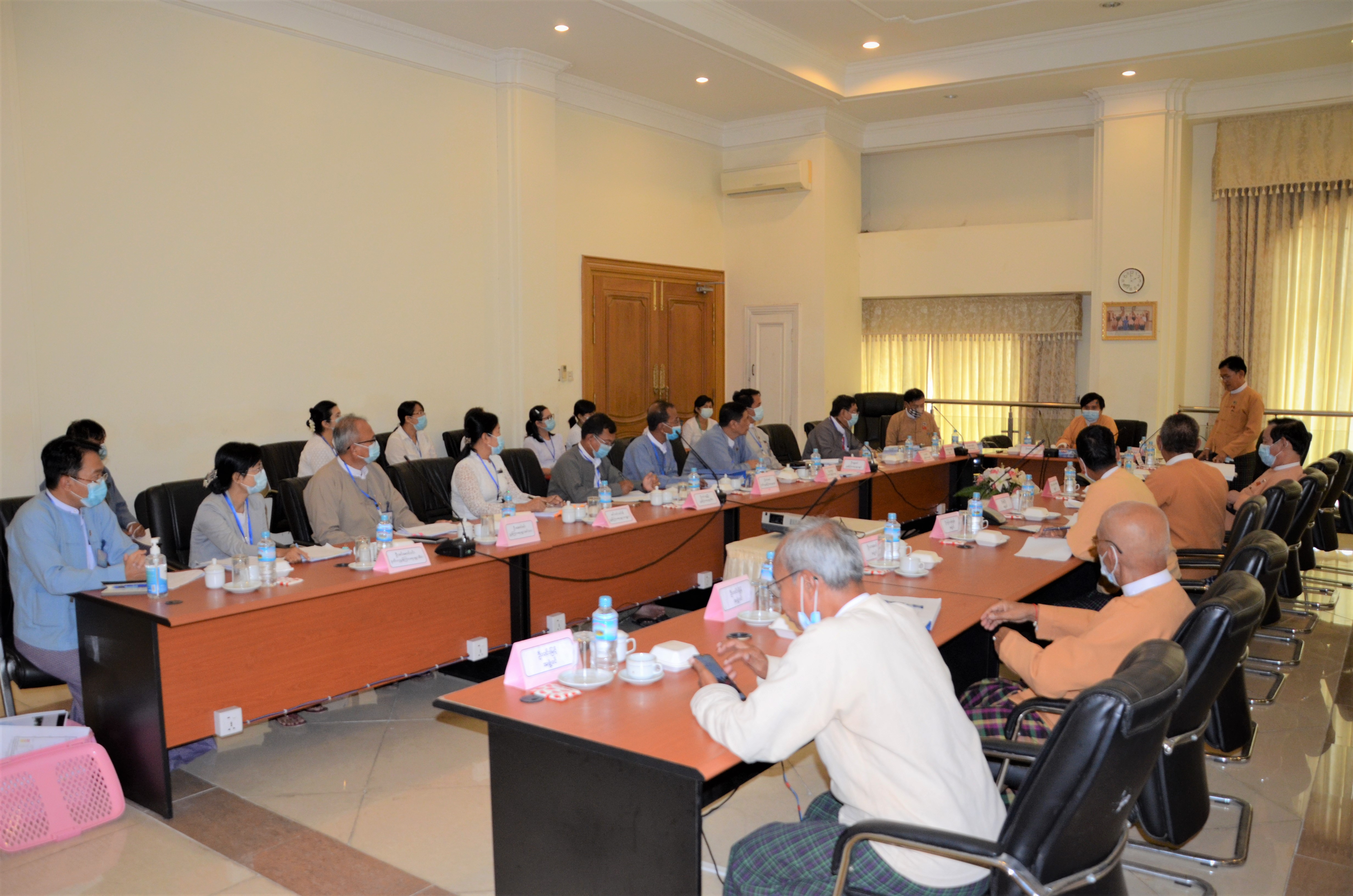 ၂၀၂၀-၂၀၂၁ ခု၊ ဘဏ္ဍာရေးနှစ်အတွက် နိုင်ငံတော်၏အမျိုးသားစီမံကိန်းဥပဒေကြမ်း၊ ပြည်ထောင်စု၏ ဘဏ္ဍာငွေအရအသုံးဆိုင်ရာဥပဒေကြမ်းတို့၌ပါဝင်သည့် စီမံကိန်းလုပ်ငန်းများနှင့် ရငွေသုံးငွေများ စိစစ်ရေးပူးပေါင်းအဖွဲ့(၁၃)သည် လျှပ်စစ်နှင့်စွမ်းအင်ဝန်ကြီးဌာနနှင့် ဘတ်ဂျတ်ညှိနှိုင်းအစည်းအဝေး ကျင်းပပြုလုပ်သည့် မှတ်တမ်းဓာတ်ပုံများ